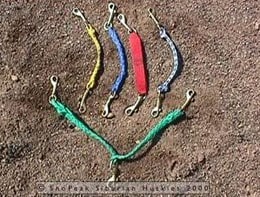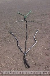 This is a strong line which is used to hold the rig onto a stationery object while the dogs are being attached to the gang line and until the musher is ready to run. It has a special quick release hook.