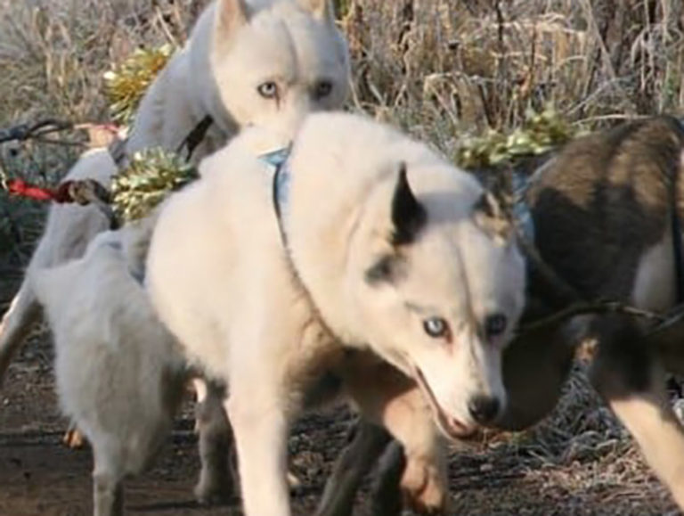 She ran at team in our 6-dog team, next to her son and used to run in our daughter’s team.